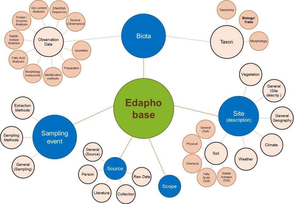 The data that Edaphobase can collect and hold are thus categorized roughly along these major questions.